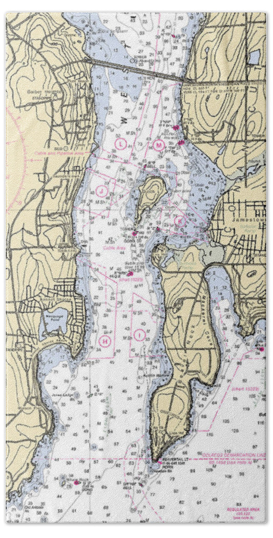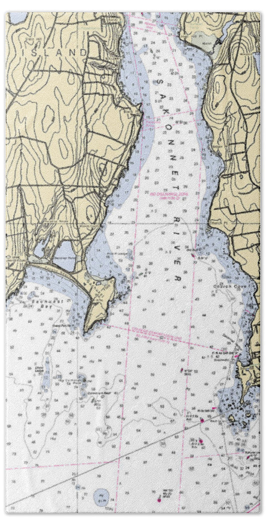 Sakonnet River & Tiverton-rhode Island Nautical Chart - Bath Towel