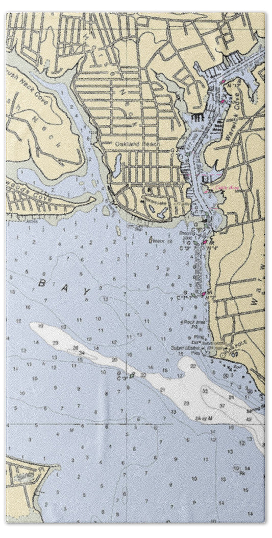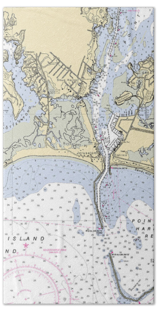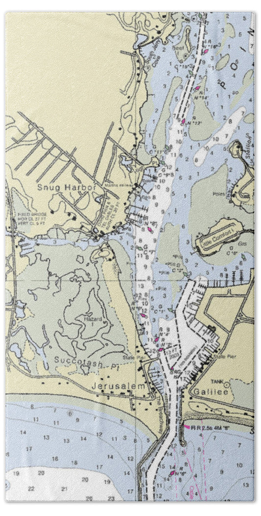 Snug Harbor Rhode Island Nautical Chart - Bath Towel