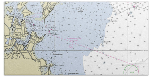 Wickford Rhode Island Nautical Chart - Bath Towel