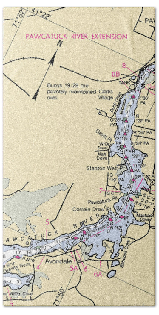 Pawcatuck River-rhode Island Nautical Chart - Bath Towel
