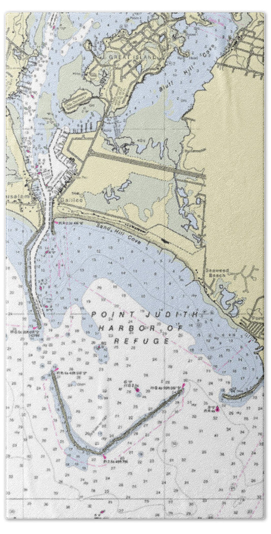 Point Judith Harbor Rhode Island Nautical Chart - Bath Towel