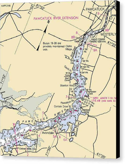 Pawcatuck River-rhode Island Nautical Chart - Canvas Print