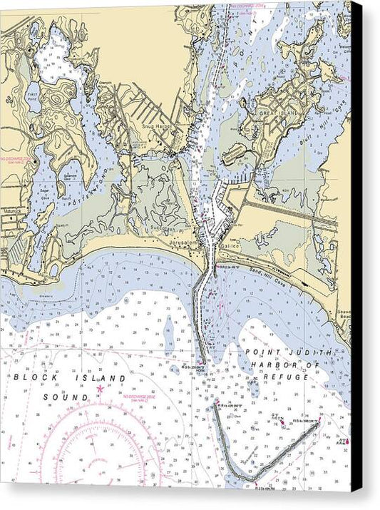 Point Judith Harbor Rhode Island Nautical Chart - Canvas Print
