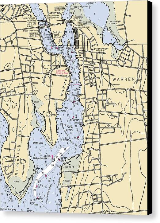 Sakonnet River & Tiverton-rhode Island Nautical Chart - Canvas Print