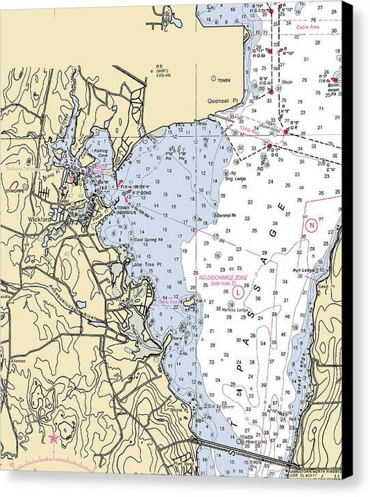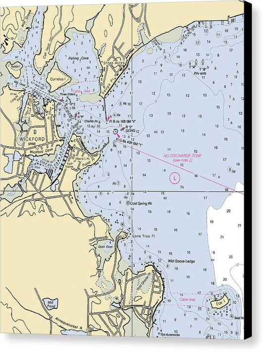 Wickford Rhode Island Nautical Chart - Canvas Print