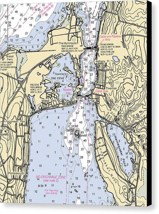 Tiverton-rhode Island Nautical Chart - Canvas Print