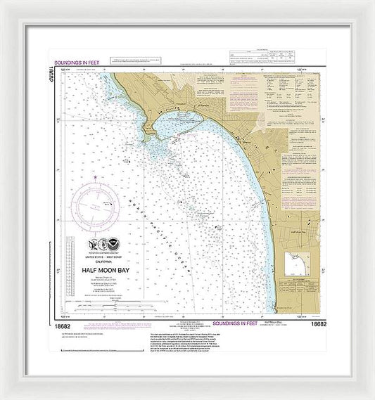 Nautical Chart-18682 Half Moon Bay - Framed Print