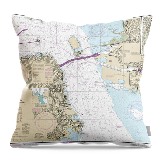 Nautical Chart-18650 San Francisco Bay Candlestick Point-angel Island - Throw Pillow