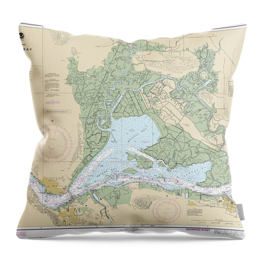 Nautical Chart-18654 San Pablo Bay - Throw Pillow