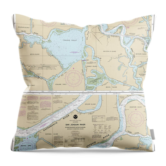 Nautical Chart-18660 San Joaquin River Stockton Deep Water Channel Antioch-medford Island - Throw Pillow