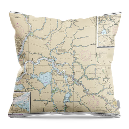 Nautical Chart-18661 Sacramento-san Joaquin Rivers Old River, Middle River-san Joaquin River Extension, Sherman Island - Throw Pillow