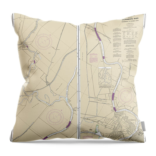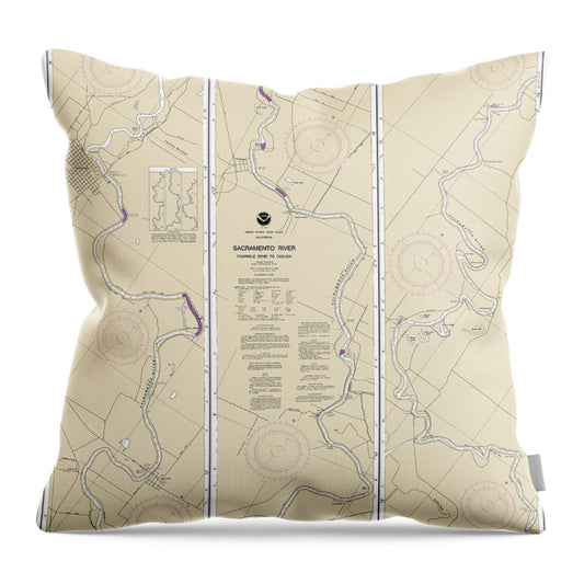 Nautical Chart-18667 Sacramento River Fourmile Bend-colusa - Throw Pillow