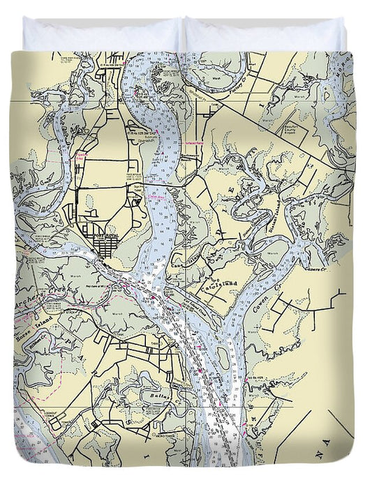 Beaufort Port Royal South Carolina Nautical Chart - Duvet Cover