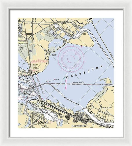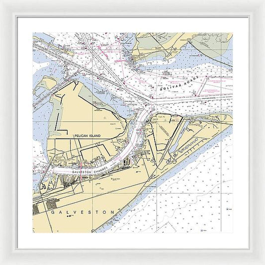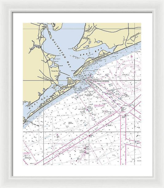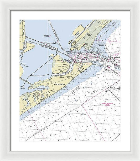 Galveston Texas Nautical Chart - Framed Print