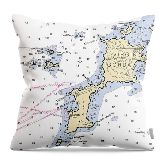 Virgin Gorda-virgin Islands Nautical Chart 1 - Throw Pillow