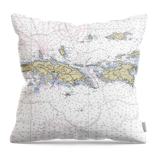 Virgin Islands Nautical Chart - Throw Pillow
