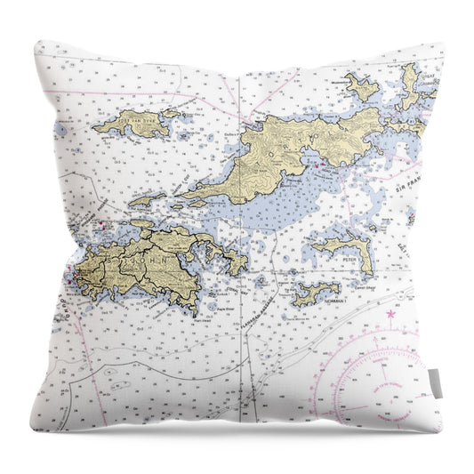 St John Virgin Islands Nautical Chart - Throw Pillow
