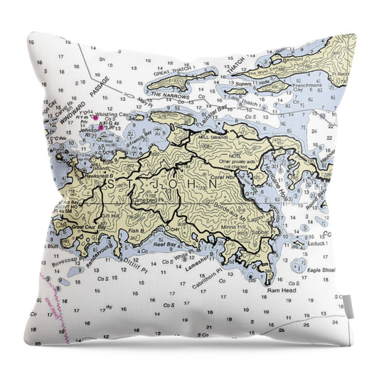 St John St Thomas-virgin Islands Nautical Chart - Throw Pillow