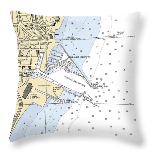 Port Washington-lake Michigan Nautical Chart - Throw Pillow