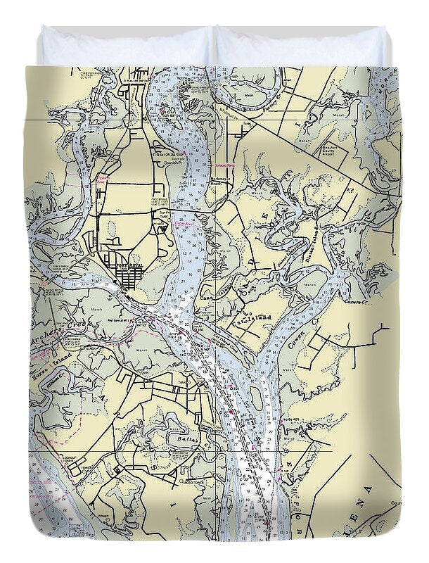 Beaufort Port Royal South Carolina Nautical Chart - Duvet Cover