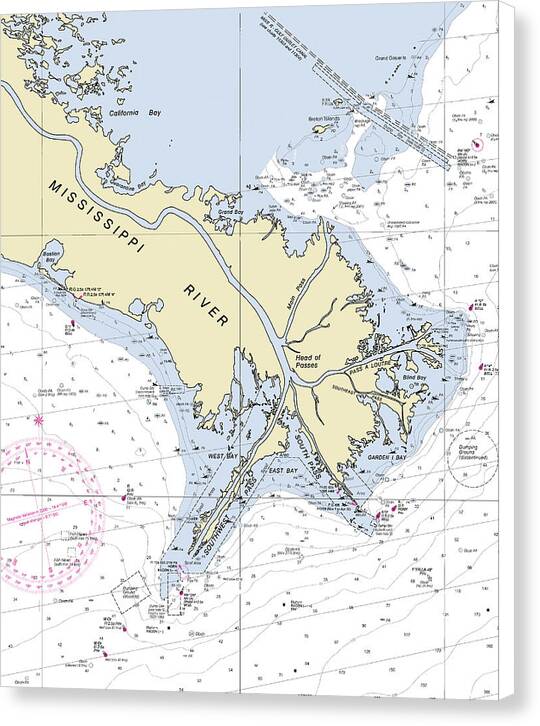 Mississippi Delta Louisiana Nautical Chart - Canvas Print