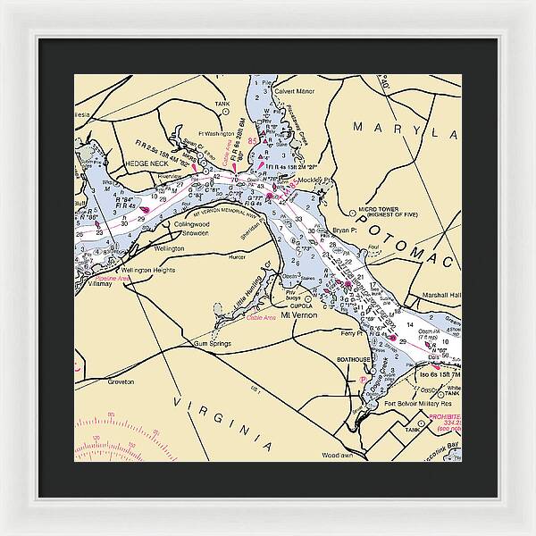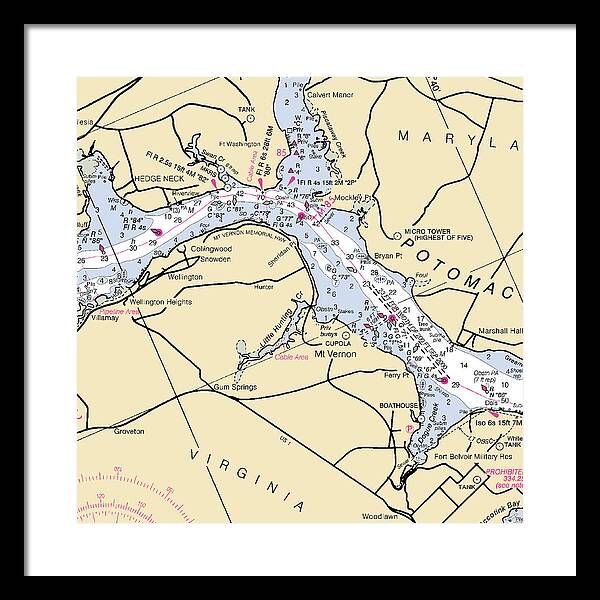 Mt Vernon -virginia Nautical Chart _v2 - Framed Print