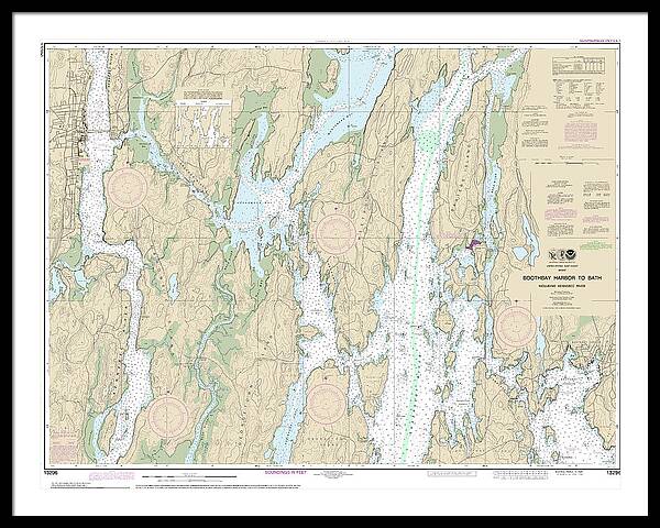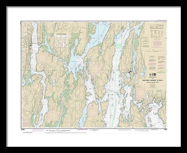 Nautical Chart-13296 Boothbay Harbor-bath, Including Kennebec River - Framed Print