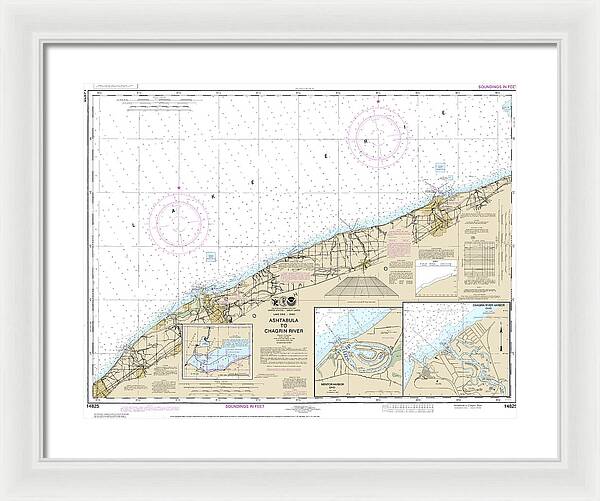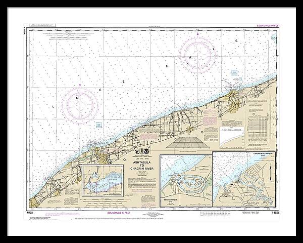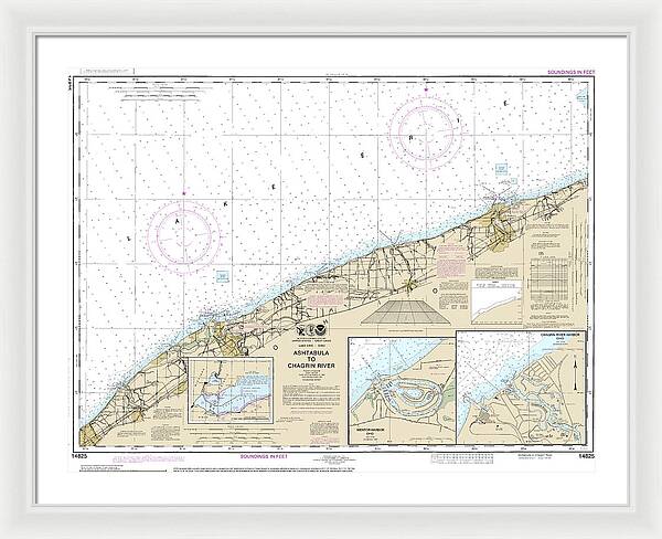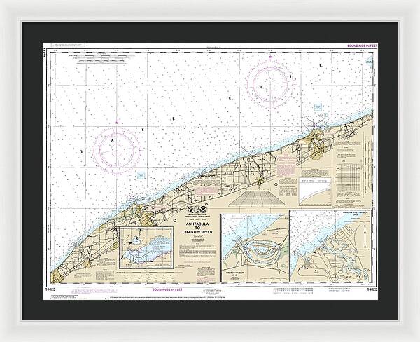 Nautical Chart-14825 Ashtabula-chagrin River, Mentor Harbor, Chagrin River - Framed Print