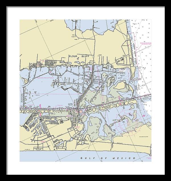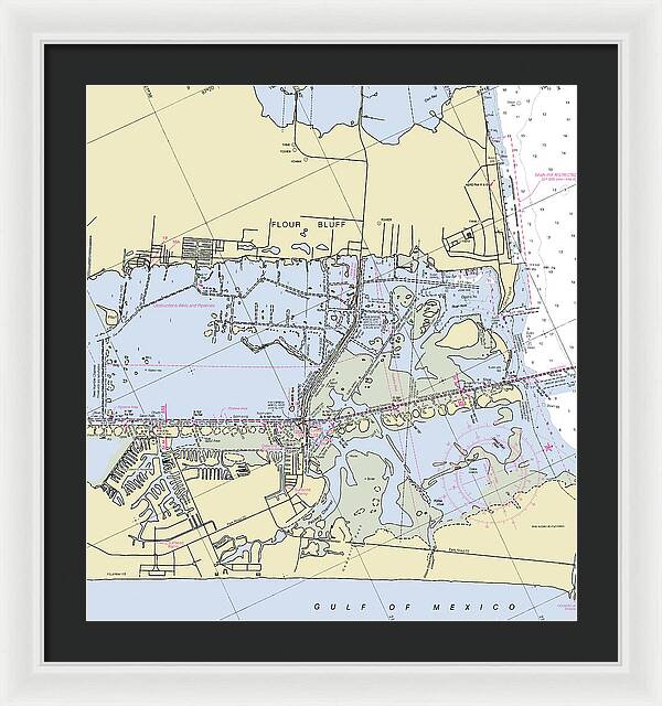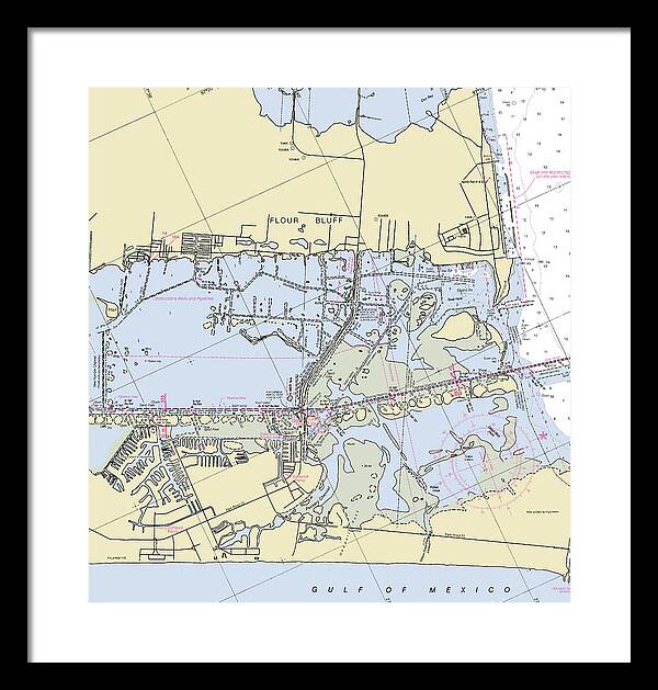 Padre Island and Flour Bluff Texas Nautical Chart - Framed Print