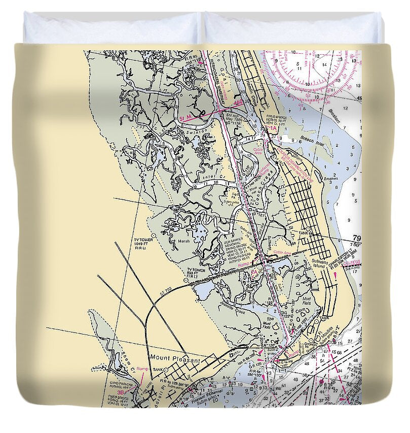 Sullivans Island-south Carolina Nautical Chart - Duvet Cover