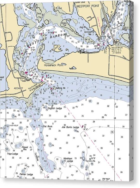 Westport Harbor-massachusetts Nautical Chart - Canvas Print
